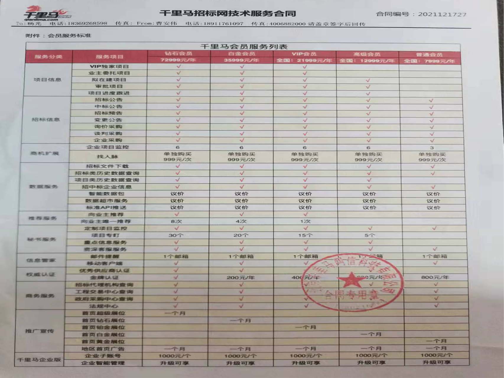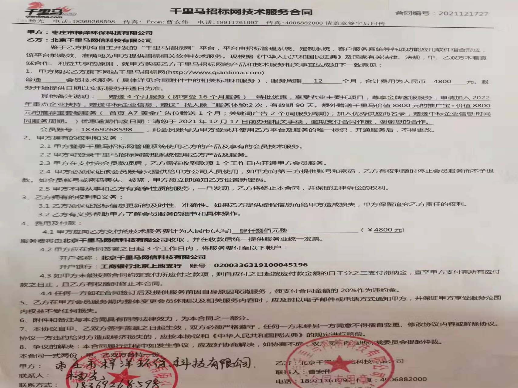 千里馬招標服務(wù)合同